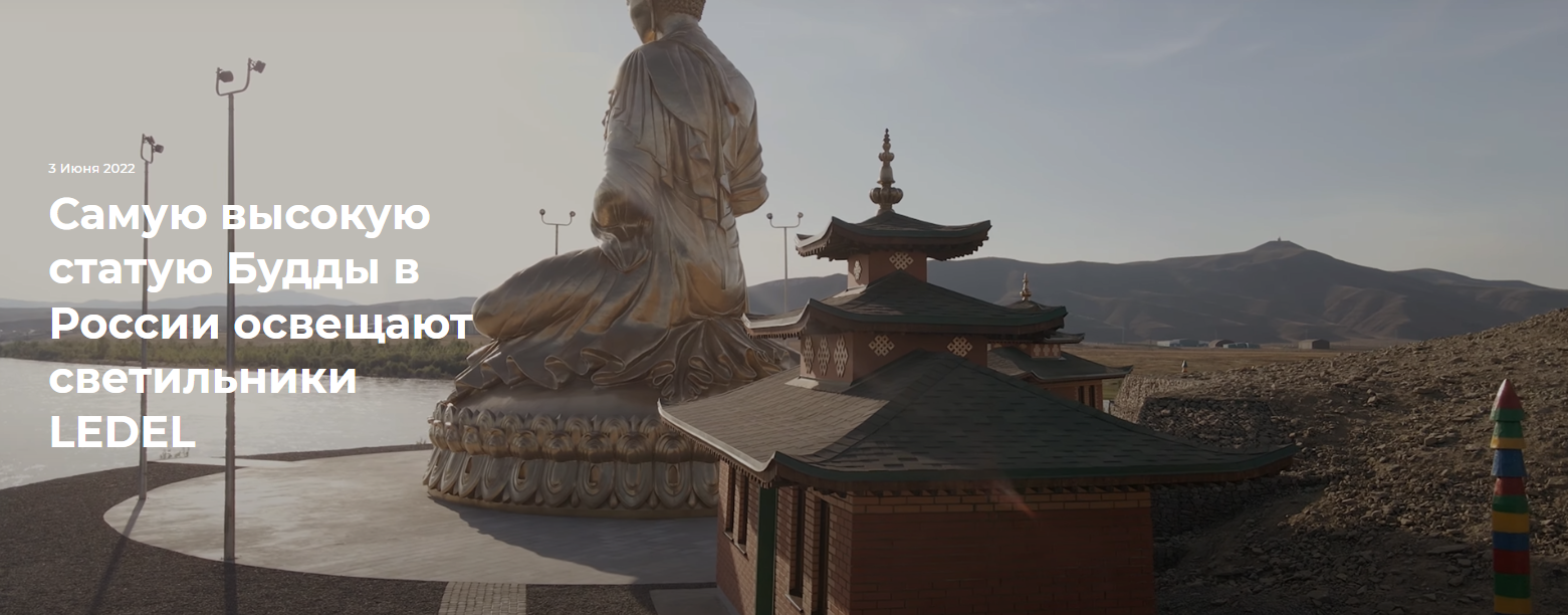 Самую высокую статую Будды в России освещают светильники LEDEL