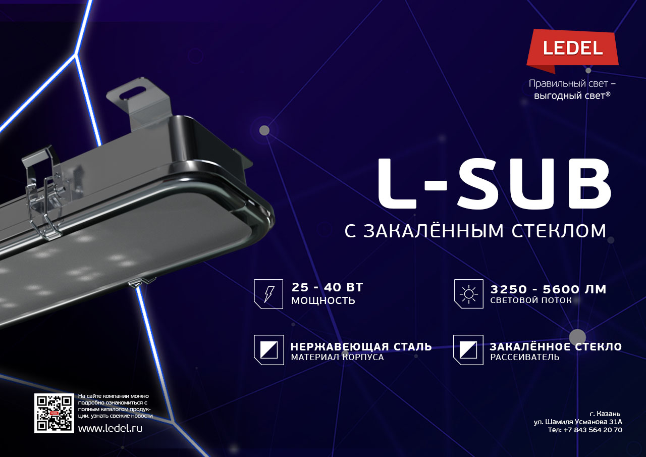 Мы повысили надёжность самого прочного светильника LEDEL! C сегодняшнего дня доступна модификация L-sub с закалённым ударопрочным стеклом. Это значит, что светильник можно устанавливать не только в тоннелях метро, но и на объектах с тяжёлыми условиями эксплуатации: на предприятиях химической, оборонной и пищевой промышленности, в животноводческих комплексах.