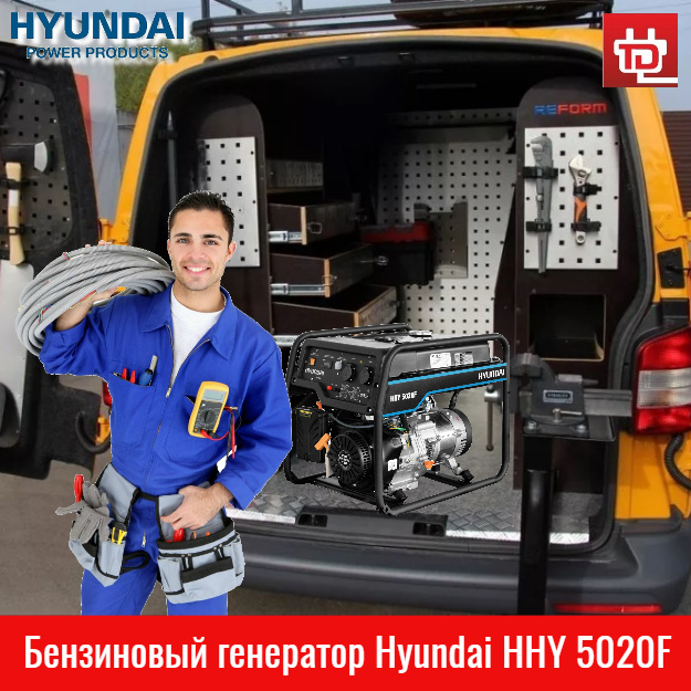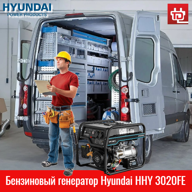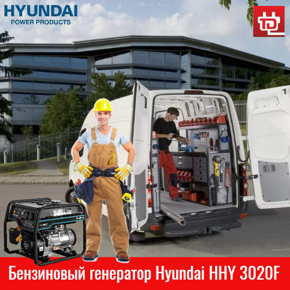Номинальной мощности 2.8 кВт бензинового генератора Hyundai HHY 3020F достаточно для бытового применения, использования мобильными ремонтными бригадами, небольшими торговыми, медицинскими и образовательными организациями.