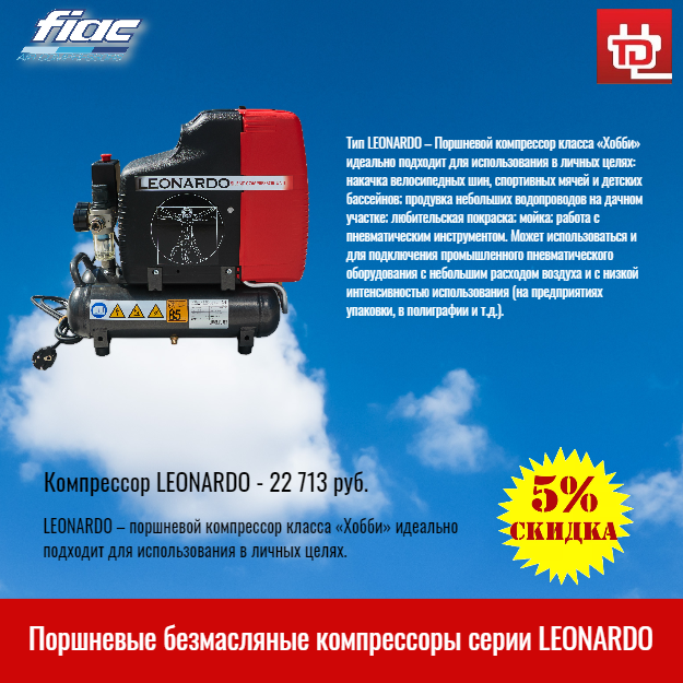 Поршневые безмасляные компрессоры серии LEONARDO - выгодное предложение!