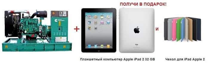 Купи дизель генераторную установку Cummins C200D5E и получи в подарок планшетный компьютер Apple iPad 2 32 GB, плюс чехол для iPad Apple 2