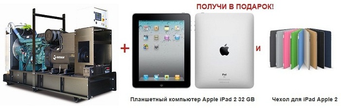 Купи дизель генераторную установку GESAN DVA 220E и получи в подарок планшетный компьютер Apple iPad 2 32 GB, плюс чехол для iPad Apple 2