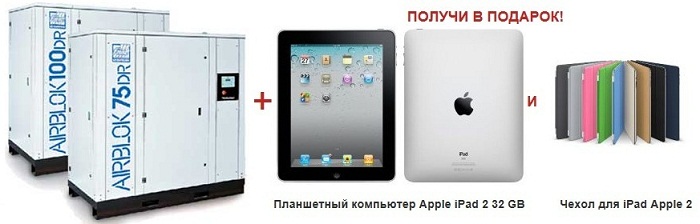 Купи винтовой компрессор Airblok 75 DR и получи в подарок планшетный компьютер Apple iPad 2 32 GB, плюс чехол для iPad Apple 2