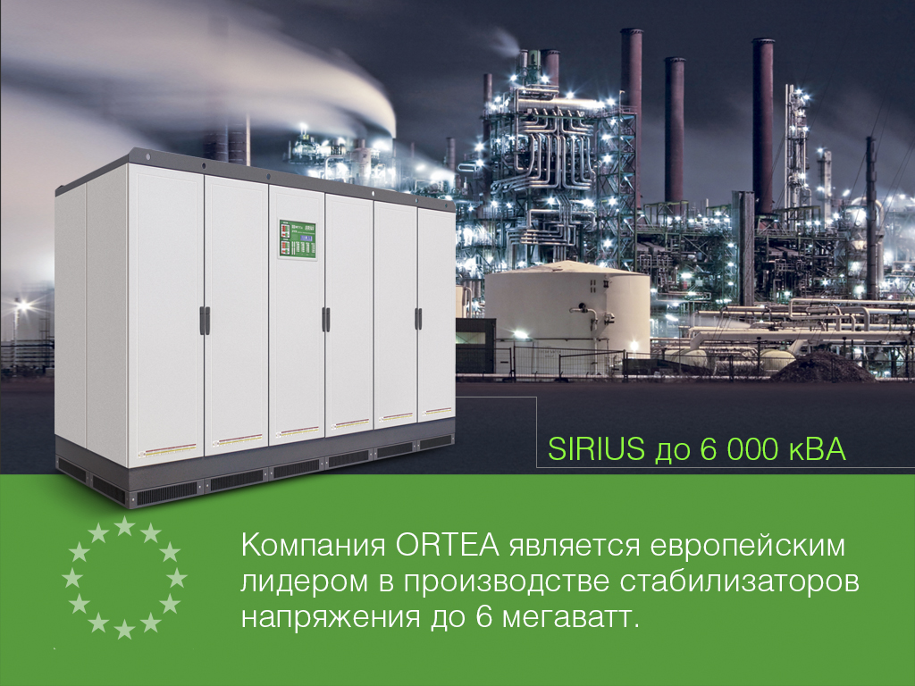 Стабилизаторы ORTEA серии SIRIUS оснащены колонновидными регуляторами напряжения, что позволяет достигать высоких значений мощности до 6000 кВА и использовать цельную, надежную конструкцию, отвечающую любым промышленным нуждам.